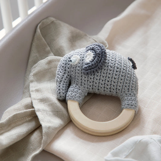 Sebra - Crochet rattle on ring, Fanto, classic grey